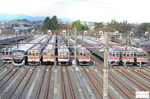11月1日に、 二子玉川駅 開業111周年記念入場券を 購入後、 長津田検車区へ 行ってきました ◆各車両が出番を待っている状態 8500系が多めですが各形式が 勢ぞろいして壮観です